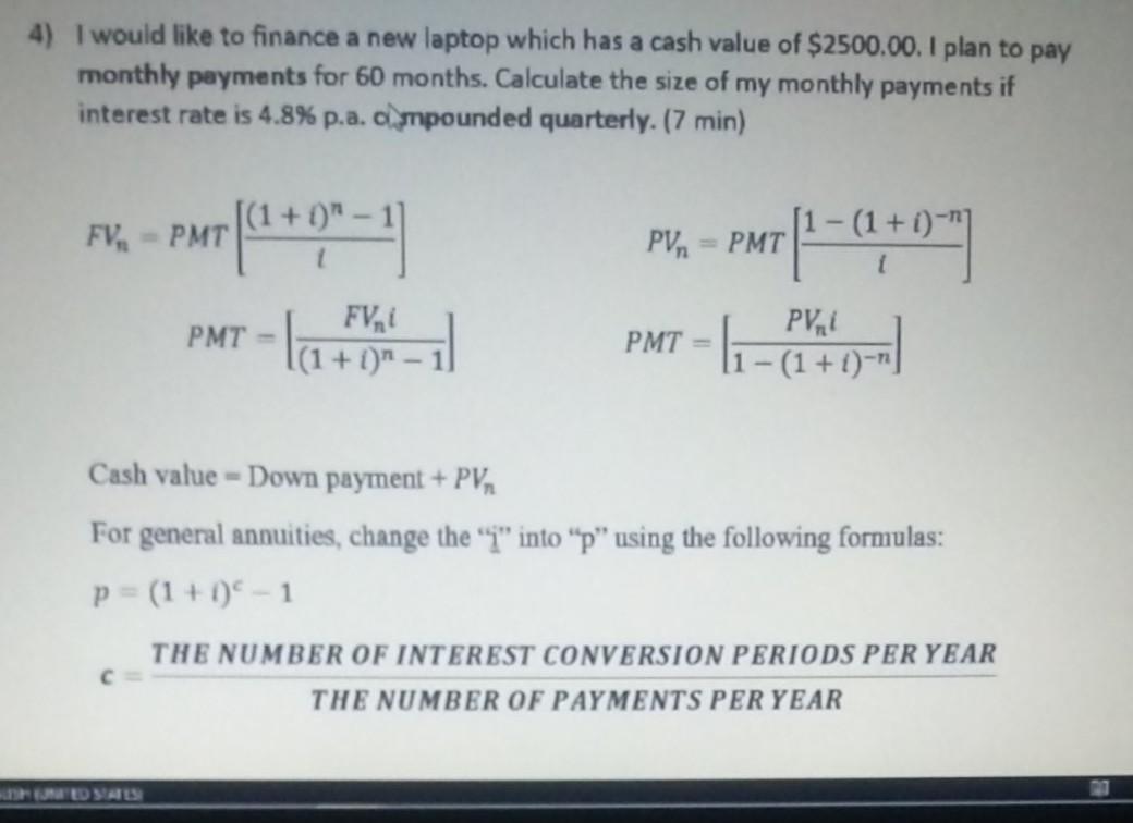 Solved 4 I Would Like To Finance A New Laptop Which Has A Chegg Com