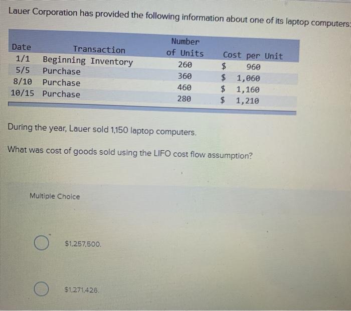 Solved Lauer Corporation Has Provided The Following Chegg Com
